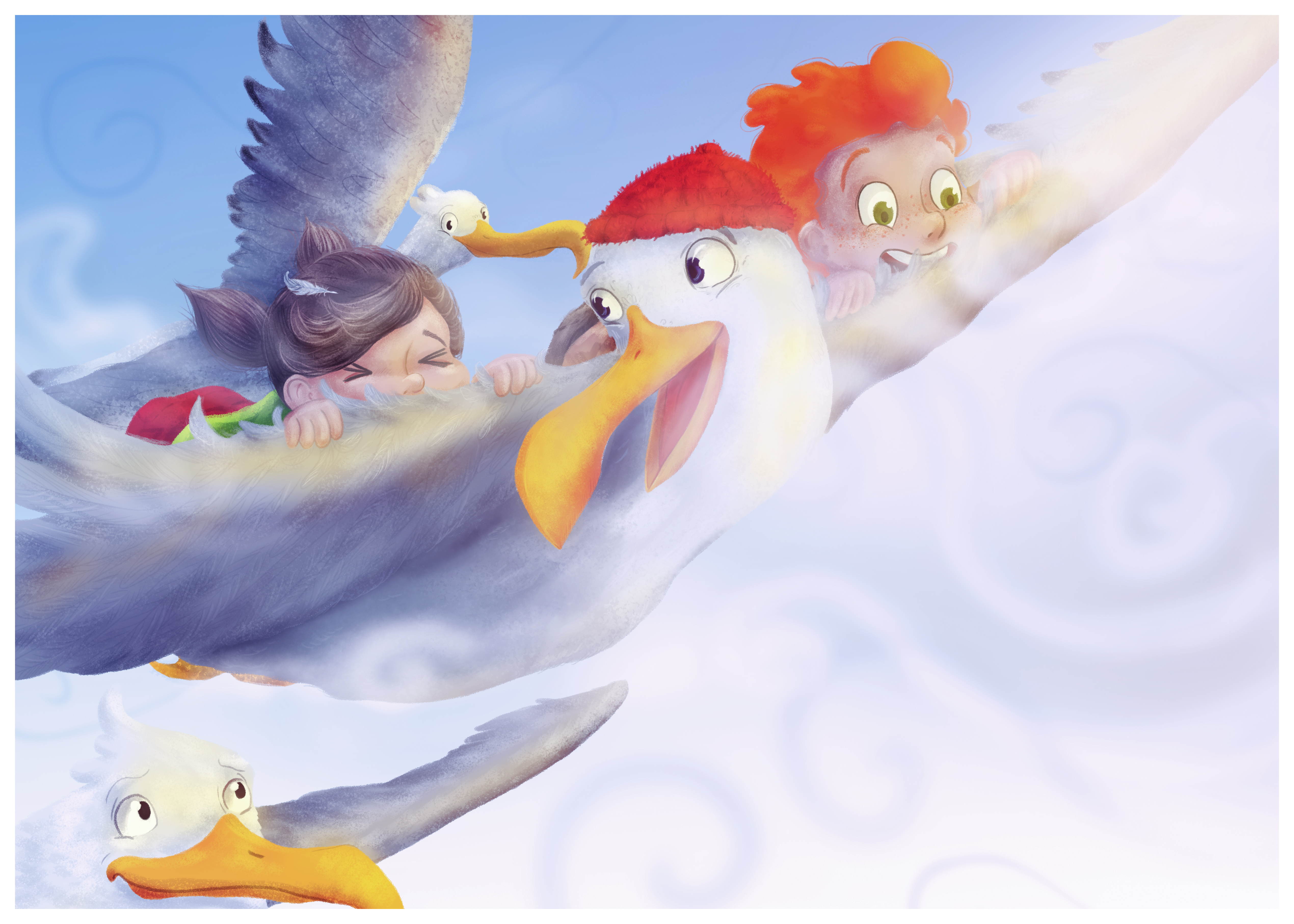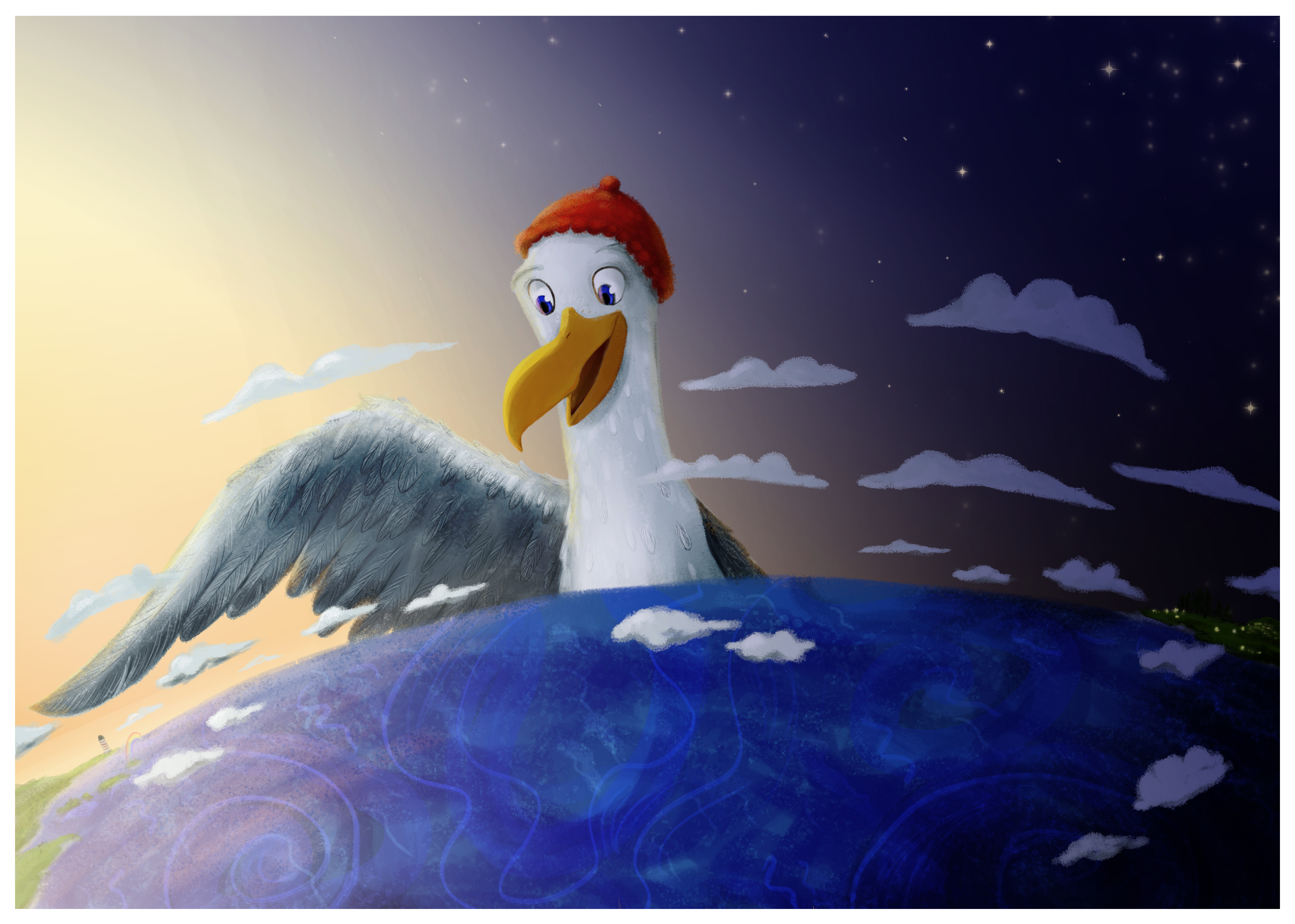 Ils sont très curieux et se demandent ce qu’il y a au-delà de l’horizon de Penn-Ar-Bed. Ils s’imaginent que de l’autre côté de l’océan, deux enfants sont assis comme eux, se posant la même question. Mais comment les rencontrer ? Il faudrait traverser l’océan. Sous un buisson d’ajonc, un goéland marin les écoute…