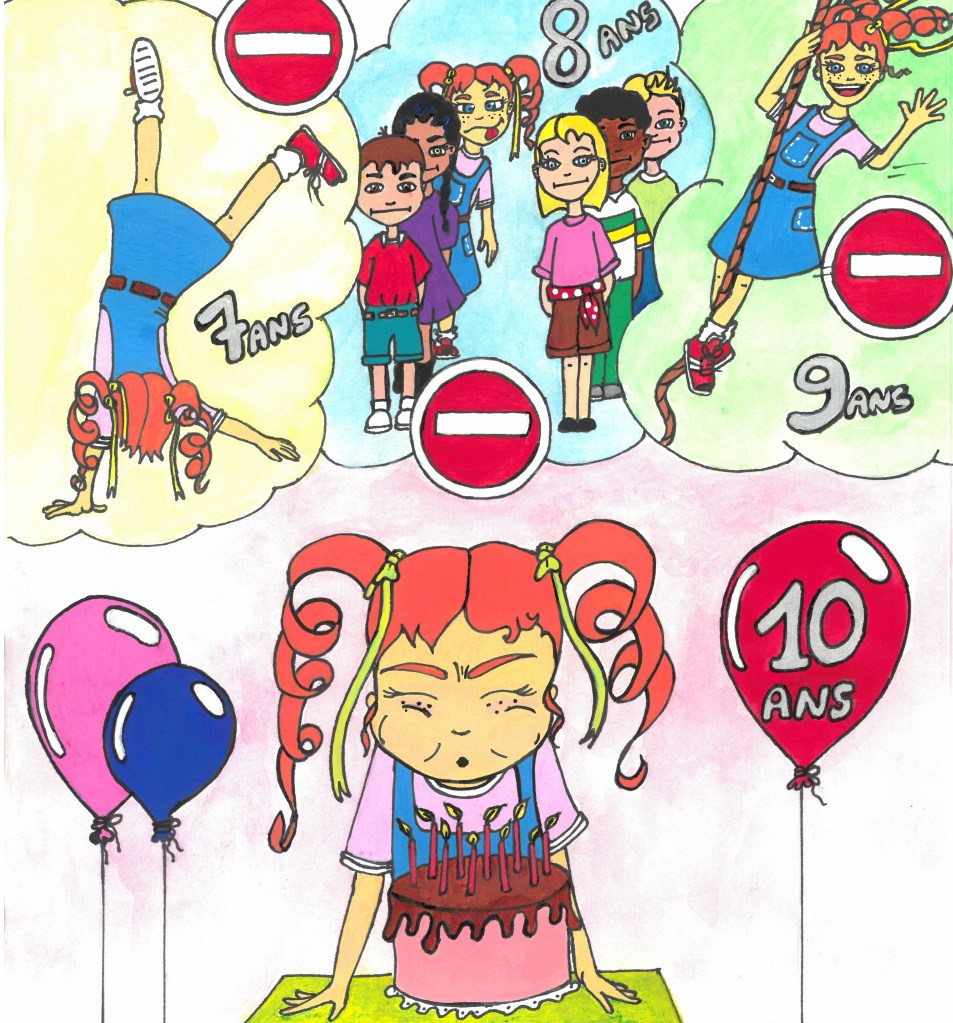 Sentir le vent dans ses cheveux, respirer le parfum des fleurs, fouler l’herbe mouillée…Ce sont des sensations, des plaisirs qu’elle imagine sans les connaître.