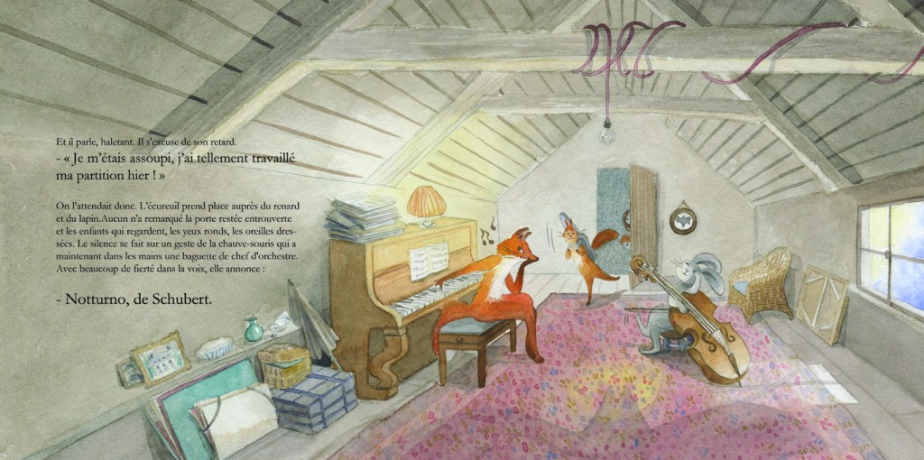 Ô surprise ! Les artistes sont des animaux de la forêt voisine. Appliqués, assidus, ils donnent le meilleur d’eux-mêmes lors des répétitions.